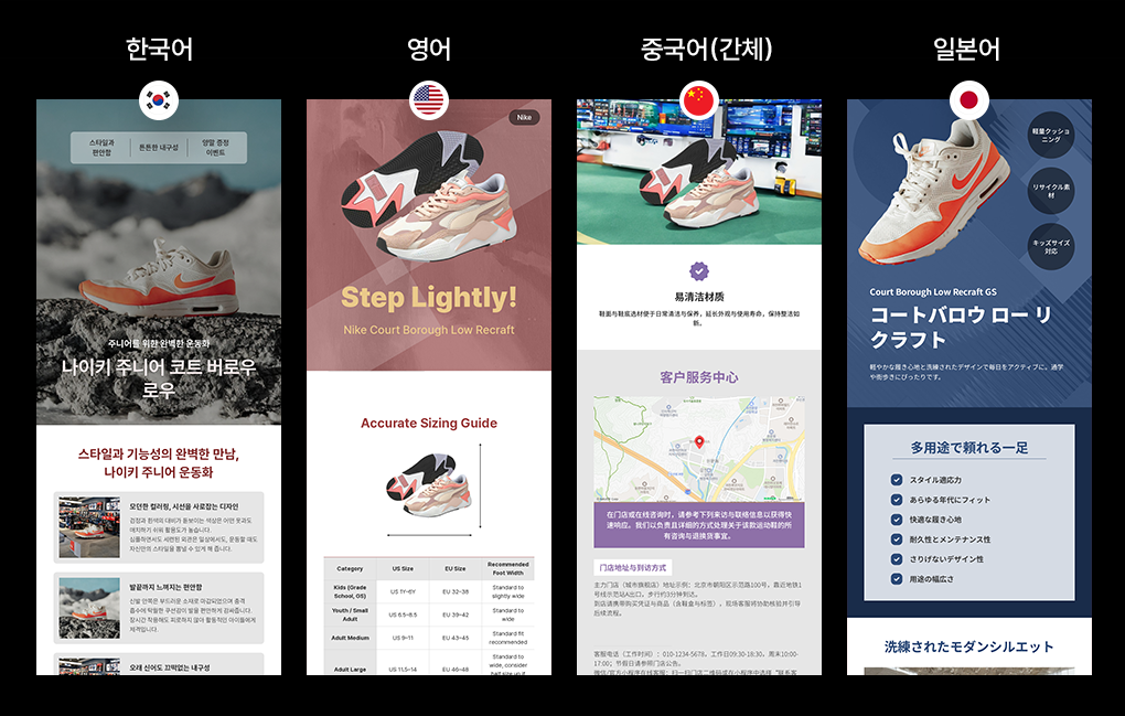 - 직역 느낌 없이 각 언어 사용자에게 자연스럽게 읽히는 현지화