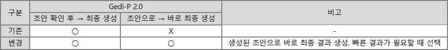 이번 업데이트를 통해 생성된 초안으로 바로 최종 생성할 수 있는 "빠른생성" 기능이 추가되었습니다.